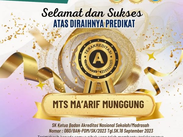Selamat dan Sukses! MTs Ma’arif Munggung Meraih Predikat Akreditasi “A”!