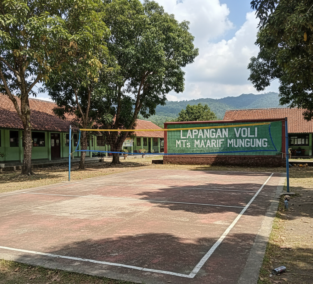 • Persiapan Kompetisi: Tim voli MTs Ma’arif Munggung akan menggunakan lapangan ini untuk berlatih dan mempersiapkan diri menghadapi berbagai kompetisi antar madrasah atau turnamen tingkat kabupaten/kota, dengan harapan meraih prestasi yang membanggakan.