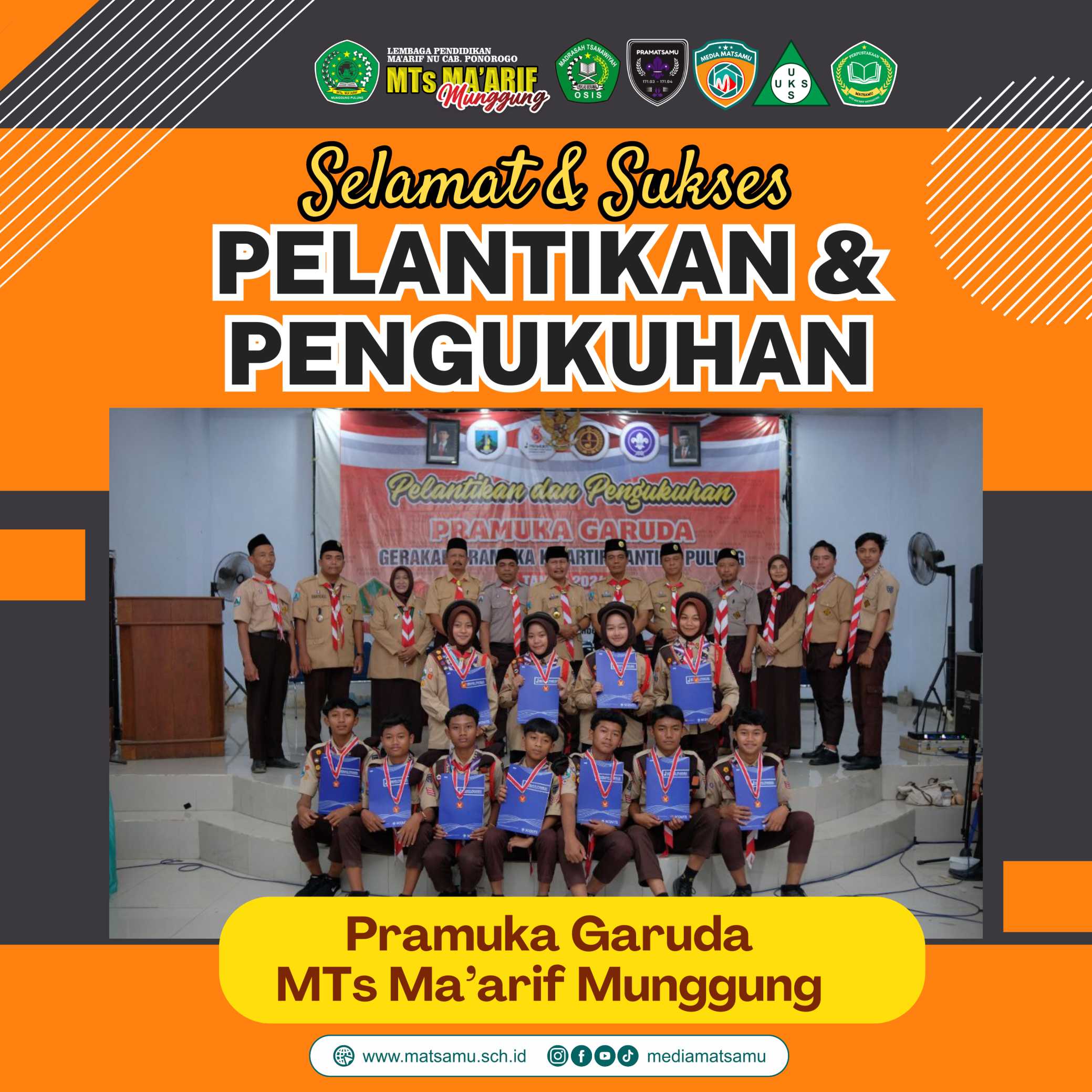 Kami ucapkan selamat kepada seluruh Pramuka Garuda MTs Ma’arif Munggung yang baru dilantik. Kalian adalah tunas-tunas muda harapan bangsa, contoh teladan yang patut dicontoh, dan siap menjadi garda terdepan dalam setiap kegiatan positif, baik di lingkungan madrasah maupun masyarakat.